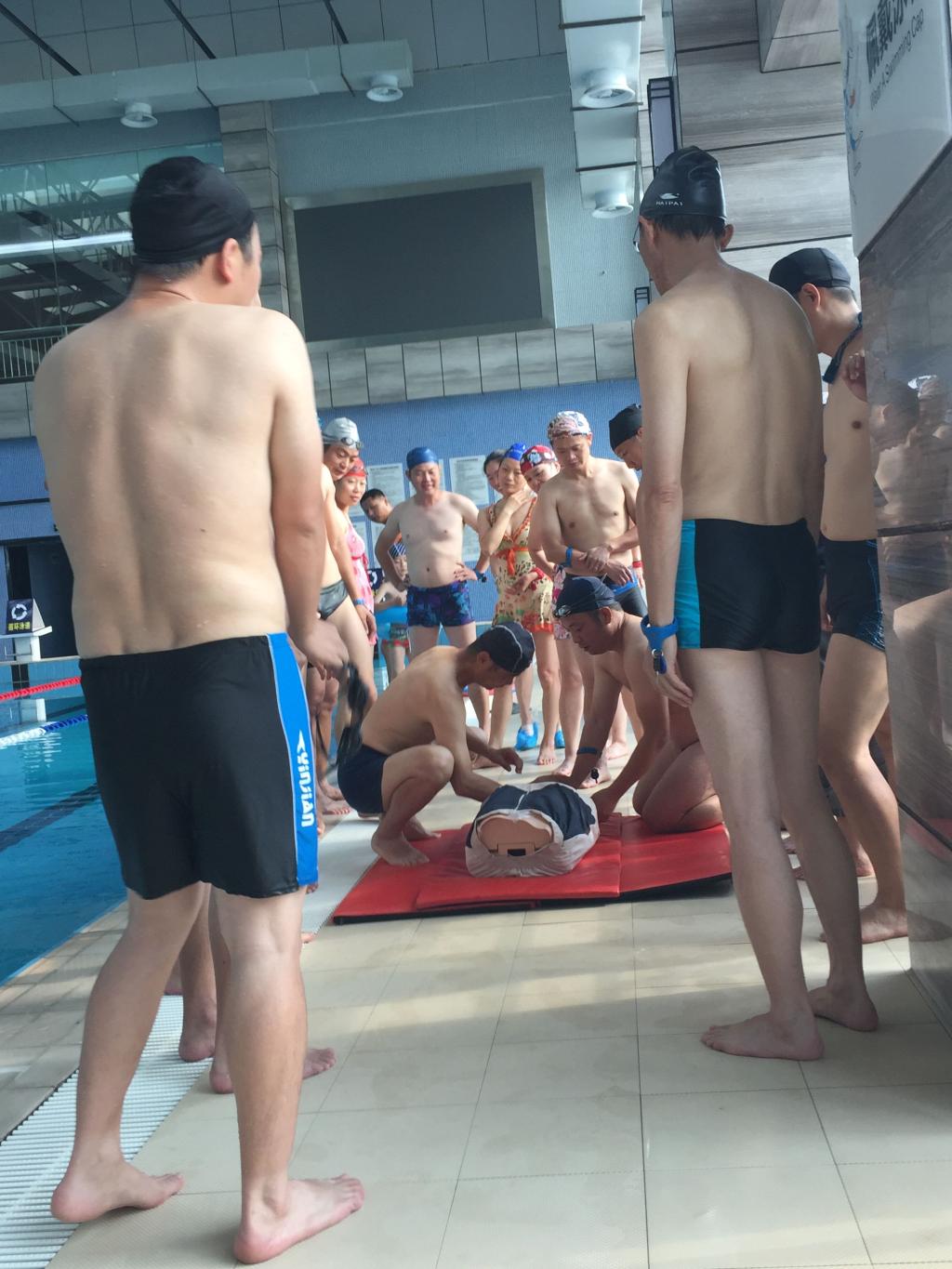 教研活动首先由董立经理做动员讲话,接着王茂老师讲授心肺复苏术等溺水后的急救方法与练习,冯其明老师讲授溺水时自救和正确营救溺水者的方法。最后,教师间还进行了蛙泳、自由泳和游泳接力等比赛。此次教研活动收到了良好效果,教师们充分认识到掌握游泳与救生指导的重大意义,纷纷表示在今后的体育教学中应加强游泳与救生指导知识和技能的传授,让员工通过游泳提高身体素质、掌握必备的求生技能。