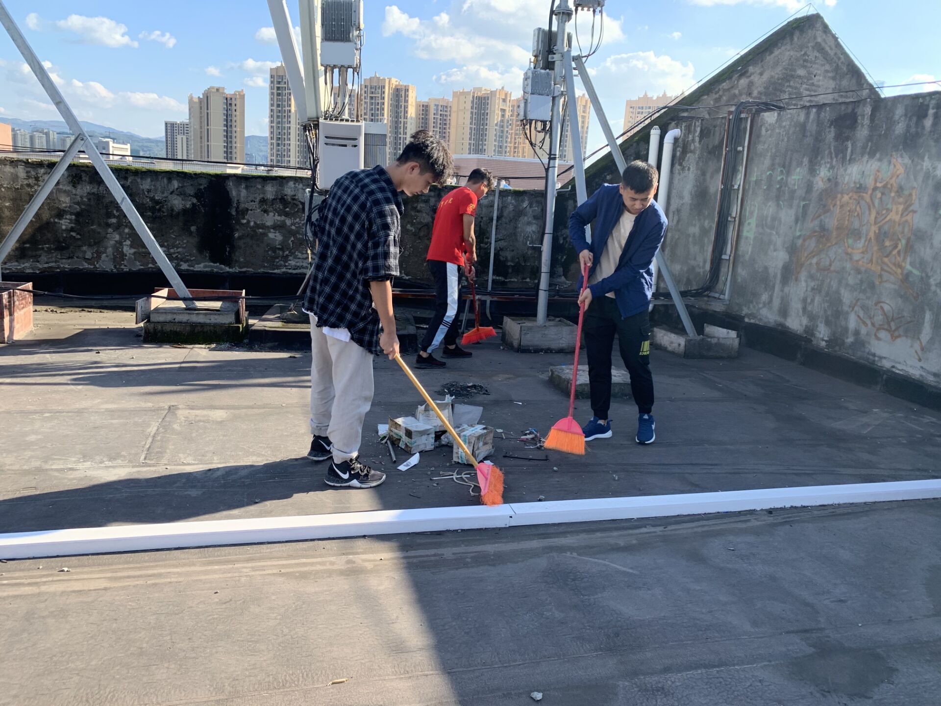 bevictor1946韦德官网由马思远老师带队,劳生部带领bevictor1946韦德官网劳动志愿者分组对九舍进行清洁,主要针对公寓天台、楼道、走廊、学习室窗户、消防栓等边边角角进行排查,清扫。坚决做到地面无垃圾,无积水,过道墙砖明亮干净,无小广告等。同时,大力宣传“四城同创”和文明公寓的工作要求,倡导大家共建共享更加美好生活的环境。