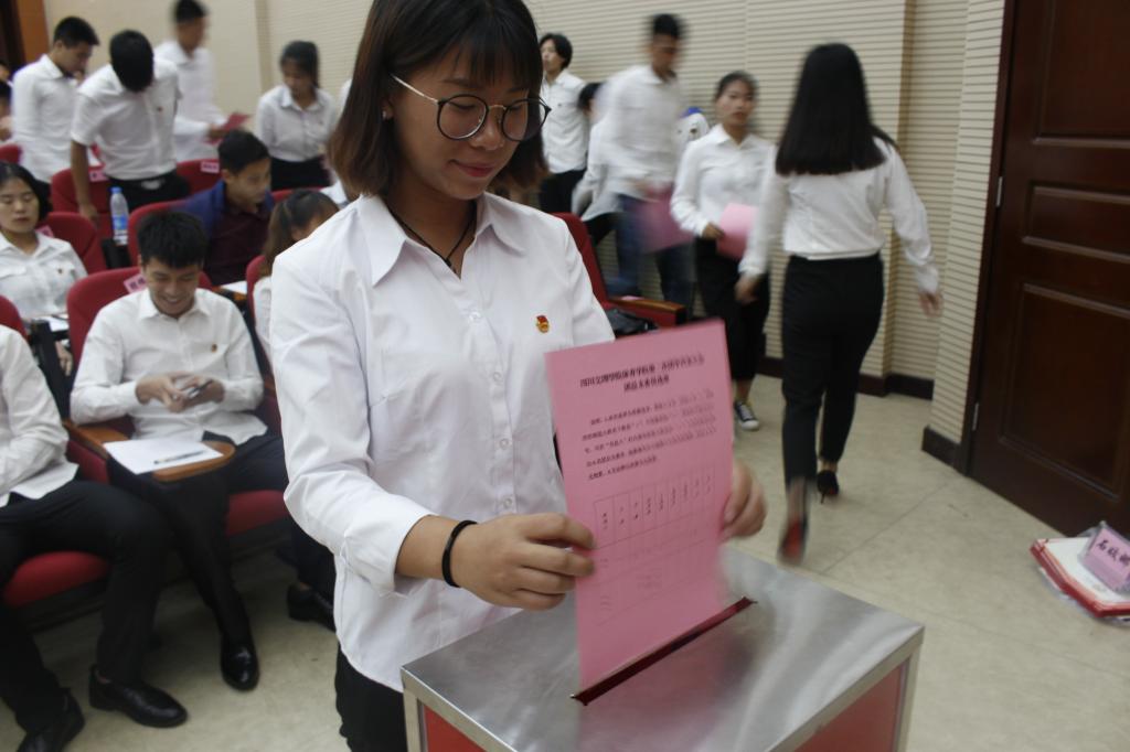 18:00,团总支副书记赵文清同学主持大会的正式会议。会上,团总支副书记赵碧磊同学和员工会主席周舰同学分别做工作总结报告。随后,进行了新一届团总支员工会委员的选举。会上还为上一届团总支员工会主要员工干部颁发了聘书并对“五四”先进个人及先进集体进行了表彰。
