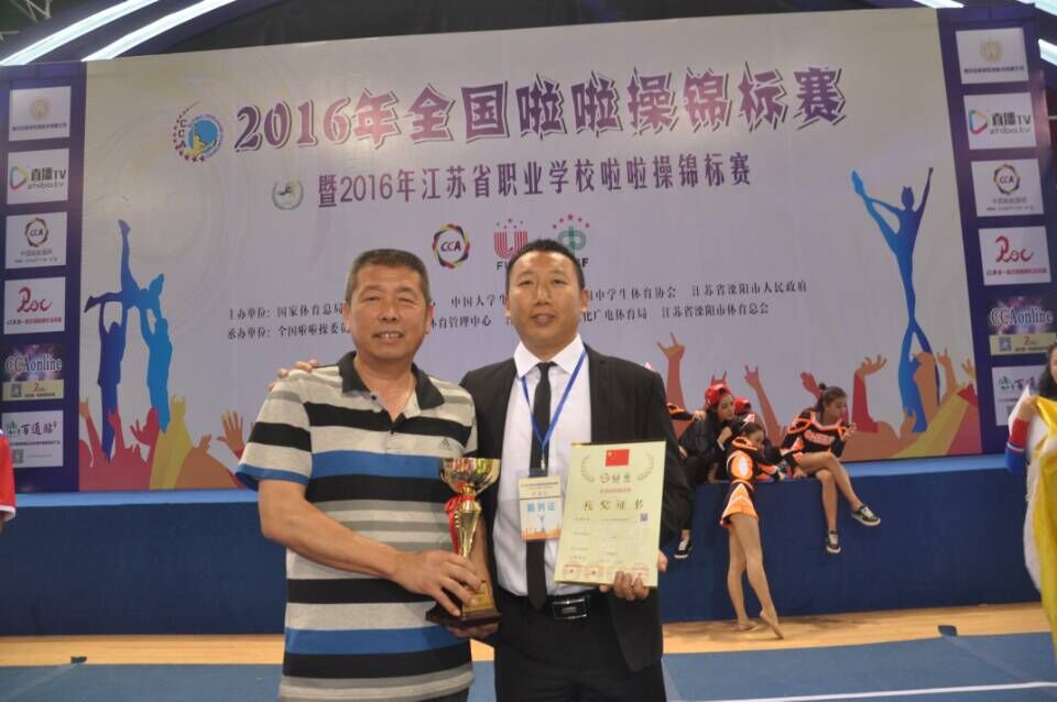 5月19日至23日,“2016年全国啦啦操锦标赛暨2016年江苏省职业公司啦啦操锦标赛”在江苏溧阳奥体国际花园体育馆隆重举行。公司36名员工在董立经理和唐绪明老师的带领下参加了比赛,并在两个比赛项目中荣获了第一名。