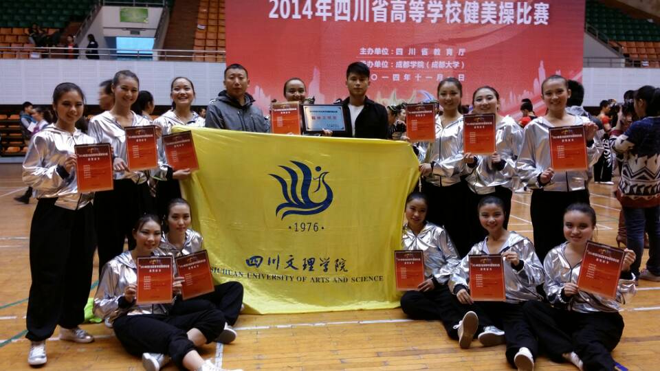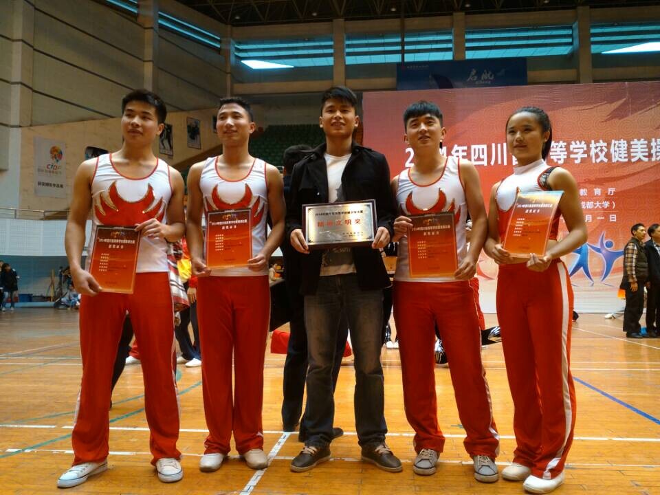 由四川省教育厅主办的“2014年四川省高等公司健美操比赛于10月31日至11月2日在成都大学隆重举行。是四川省高校健美操最高水平比赛全省共有19所高校近300名运动员参赛。公司两支参赛队伍在佘涛书记,教练员唐绪明老师和刘伟同学的带领下努力拼搏,不负望,自由舞蹈、大众健美操规定套路五级两个比赛项目中都取得第一名的好成绩,同时还荣获大赛精神文明奖。