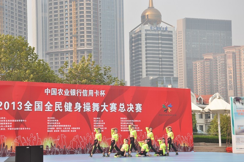 10月9日,由国家体育总局与中国农业银行联合推动的“中国农业银行信用卡杯”2013年全国全民健身操舞大赛总决赛在青岛五四广场拉开帷幕。此次比赛包括时尚健身操舞、时尚健身操、街舞、广场健身操和民族健身操舞五大类,吸引了全国各赛区四千多名选手参加。公司2012级健美操队在bevictor1946韦德官网董立教授及冉卫东老师的带领下参加了此次比赛。