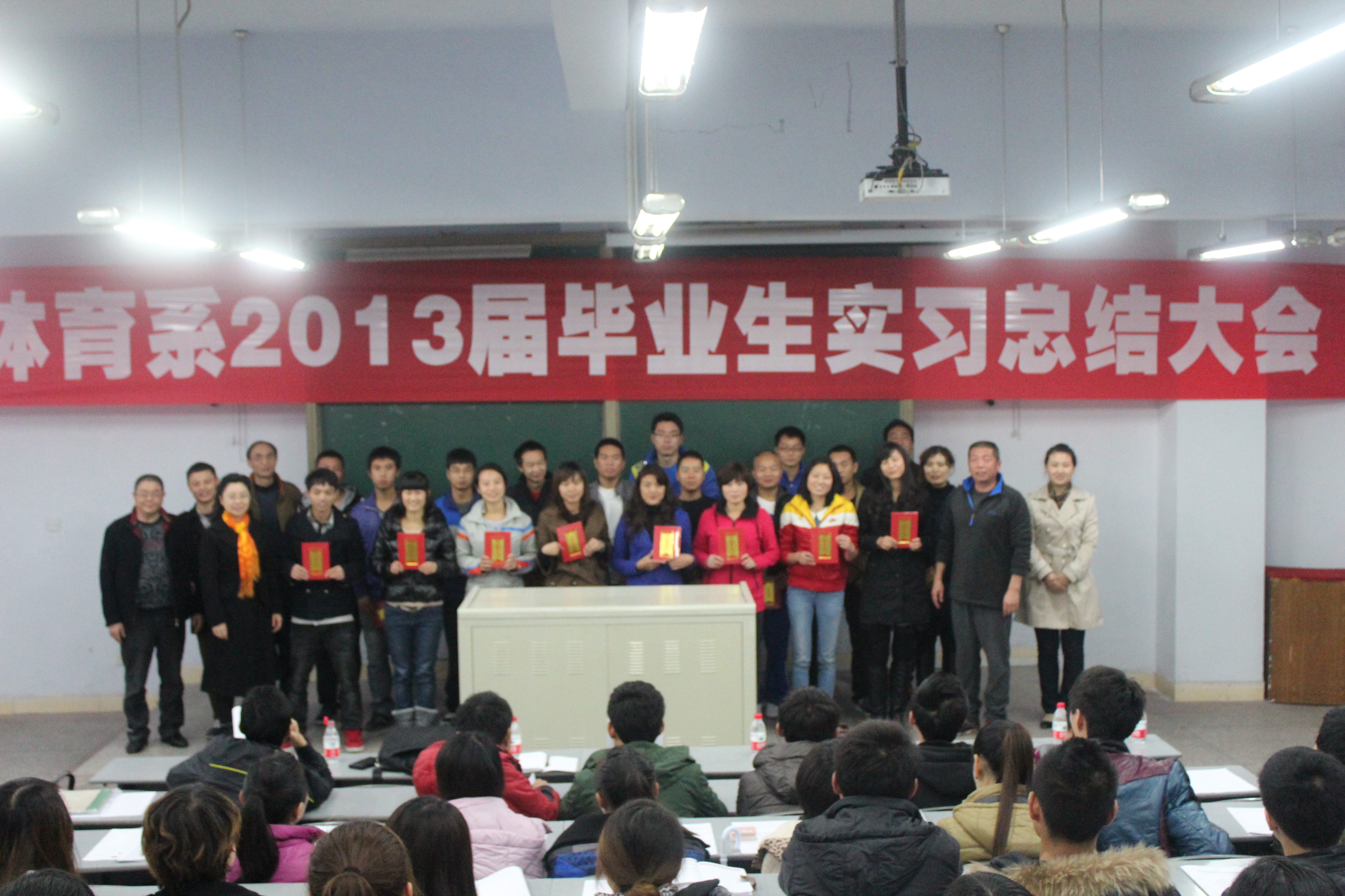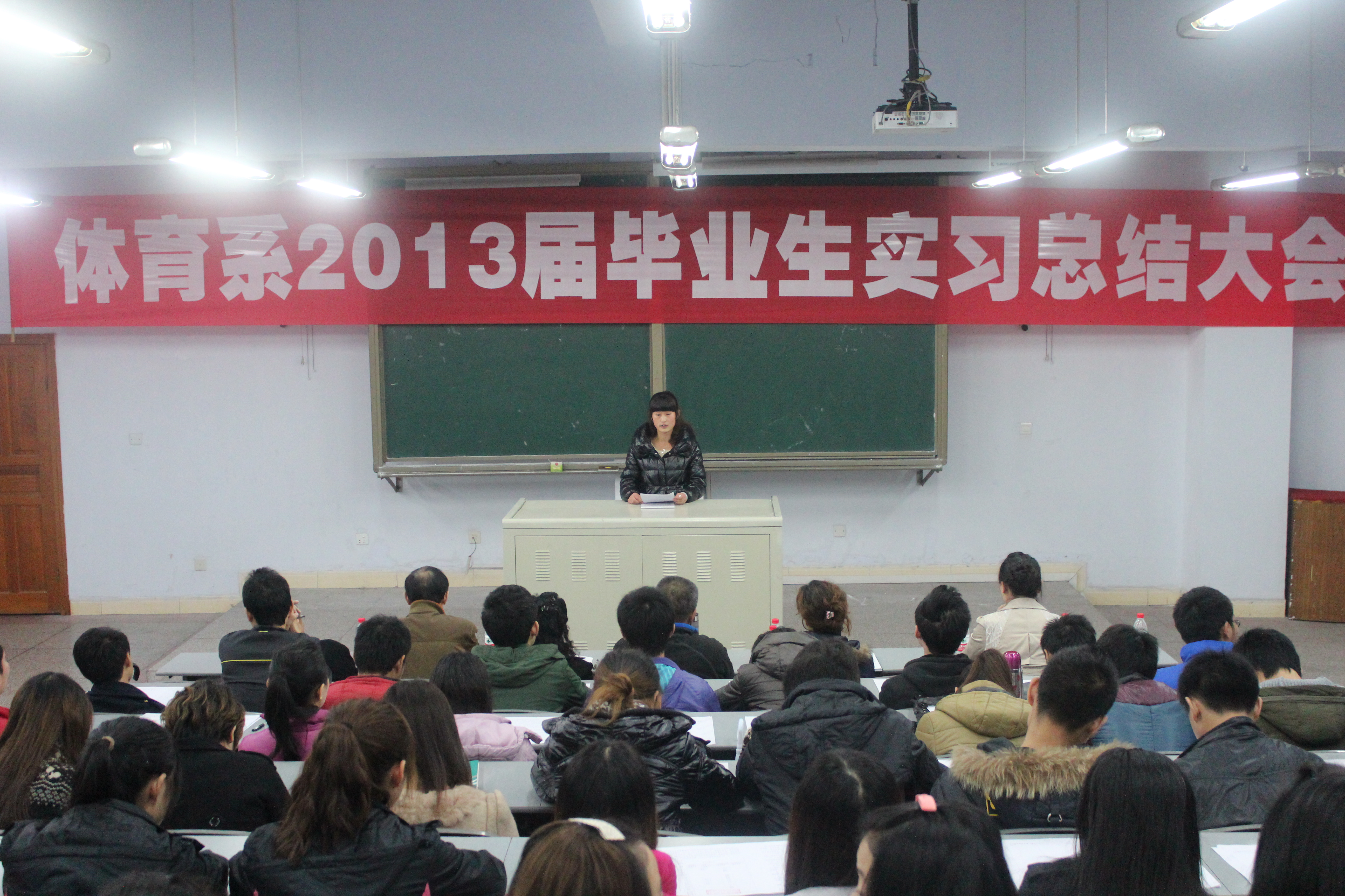 2012年11月15日下午4:30,bevictor1946韦德官网体育系2013届毕业生在莲湖校区教学楼125教室举行实习总结大会。此次大会由何其波同学主持,参加此次大会的有教务处曹科长、体育系主任董立教授、体育系副主任陈碧述教授、体育系李文华老师、体育系团总支书记兼辅导员李霞老师、体育系辅导员那明明老师,以及体育系2013届的全体毕业生。