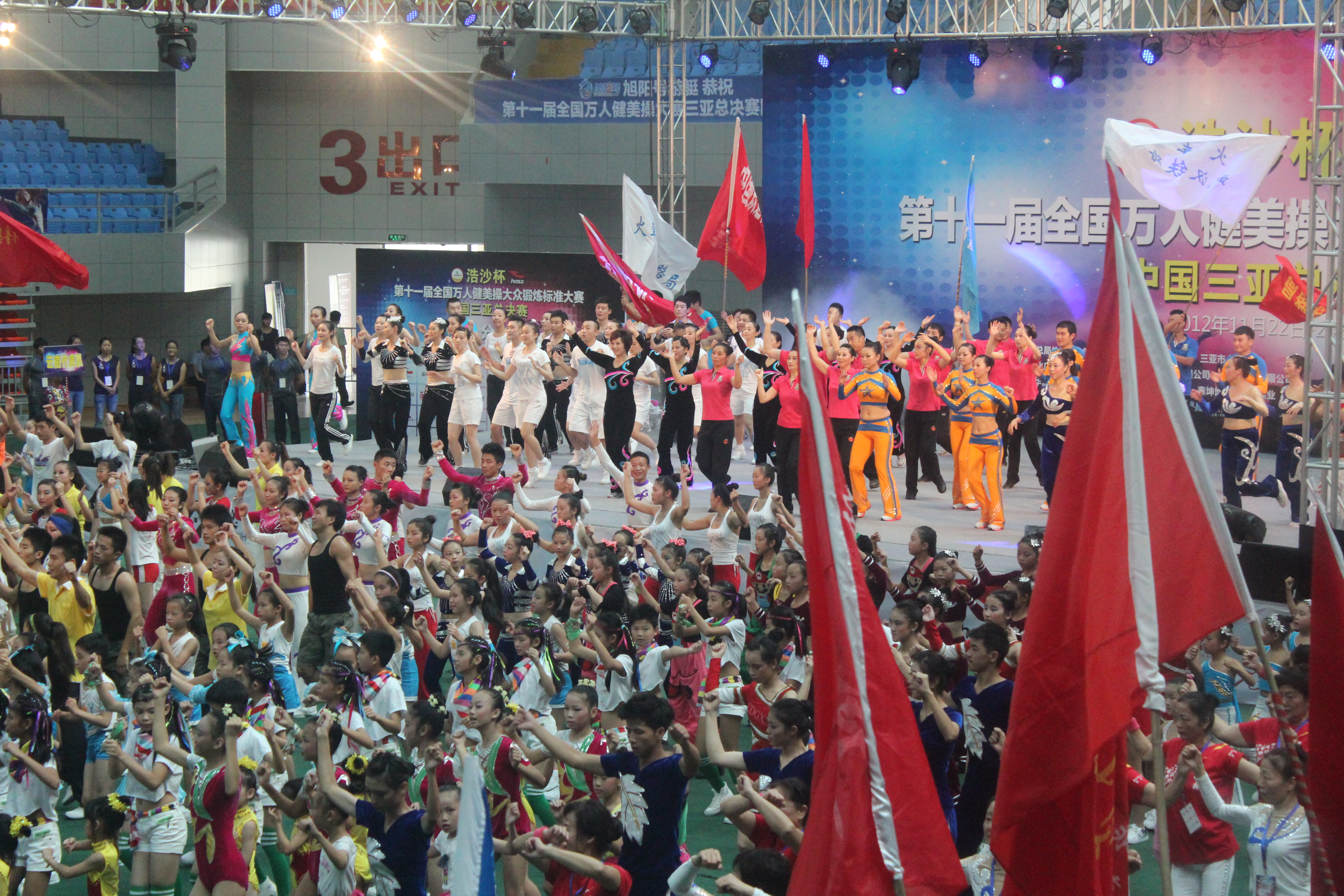 1121至24日,由国家体育总局体操运动管理中心、中国健美操协会主办,浩沙(中国)有限公司、浩沙国际健身管理有限公司承办的2012年“浩沙杯”全国万人健美操大赛总决赛在中国三亚隆重举行,全国来自北京、福建、广东、江西、海南等18个省市约50多支队伍共1000余人参加了此次比赛,公司体育系组建的大众五级队在体育系党总支副书记张皓老师及冉卫东教练的带领下参加了本次比赛,并获得了喜人的成绩。