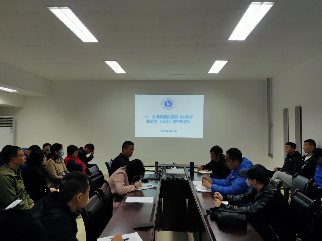 首先,佘涛经理解读了教育部《本科毕业论文(设计)抽检办法》,他指出:在当前师范专业认证以及毕业论文抽检背景下,本科毕业论文指导工作,在近几年将会是一项重要的工作,bevictor1946韦德官网全体教职工应认清当前的形式,改变传统的思想,认真规范地推进毕业论文指导工作。