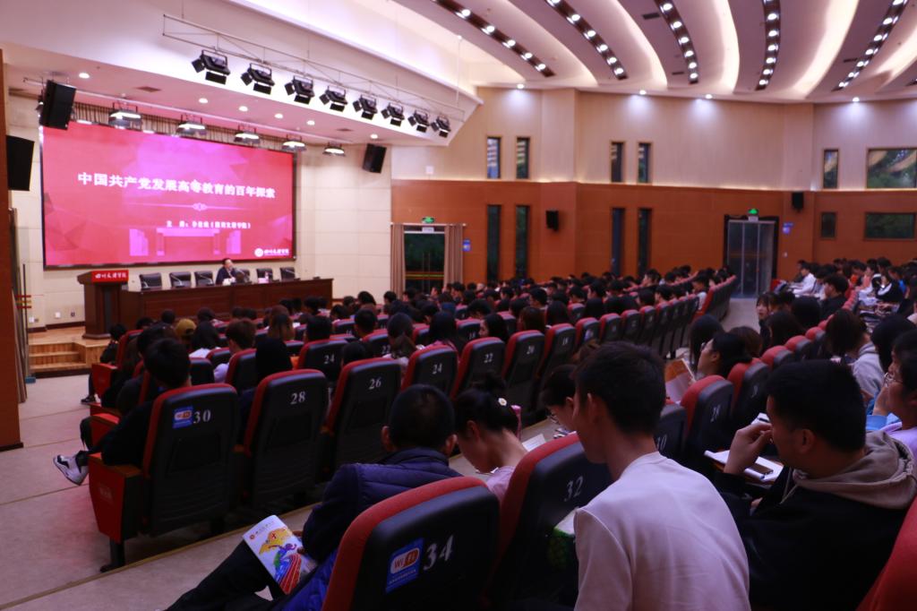 419日晚,公司党委常委、副董事长李壮成同志到公司为全体师生做党史学习教育宣讲,此次讲座主题为中国共产党发展高等教育的百年探索。公司党总支书记王兆忠主持了宣讲会,公司全体教职工、2019级和2018级全体员工参加了宣讲会。