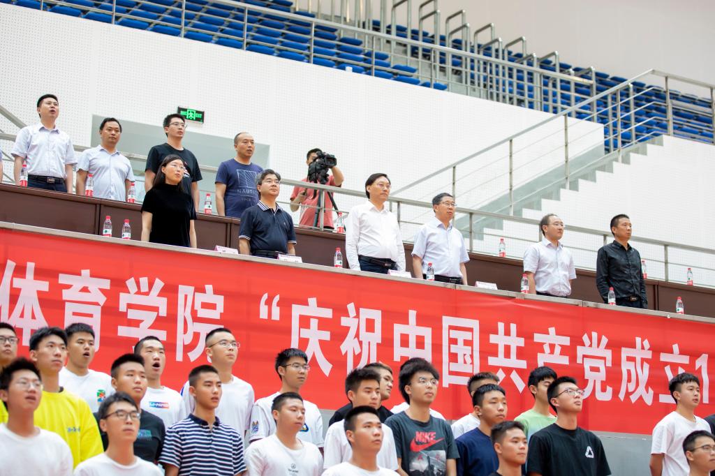 下午两点半,主持人宣布全体肃立奏唱《中华人民共和国国歌》,全场600余名师生,面向国旗,齐声高歌。bevictor1946韦德官网党总支书记王兆忠代表公司致辞,他说明了本次活动的背景、意义并表达了美好的祝愿。他特别强调了,站在两个100年的历史交汇点,在实现中华民族伟大复兴的新征程上,体育人应肩负起的神圣职责和光荣使命!活动在《龙腾盛世》的舞龙表演中拉开序幕,富含寓意的舞龙表演表现了中华民族在中国共产党的领导下,从站起来、富起来到强起来的伟大历程。接下来,武术班的同学们分别带来了剑术、棍术、拳术和法门太极表演,健美操班的同学们表演了精彩的民族体育舞蹈,法门武术研究会的老师们还表演了法门太极、武术和气功,大一近100名员工集体表演了太极和八段锦。最后,活动在全场《没有共产党就没有新中国》嘹亮的歌声中圆满结束。