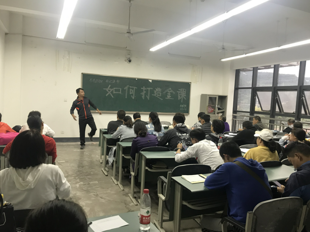 在两位老师做完培训心得交流后,付宏、徐永燊、黎明、谢成立、李文华、张岩松、马思远、李进文等老师纷纷发言,表达了自己对“打造金课”的建议和想法。提出要丰富教学方法、规范课堂常规,做好组织工作,充分利用评估评价体系等建议。