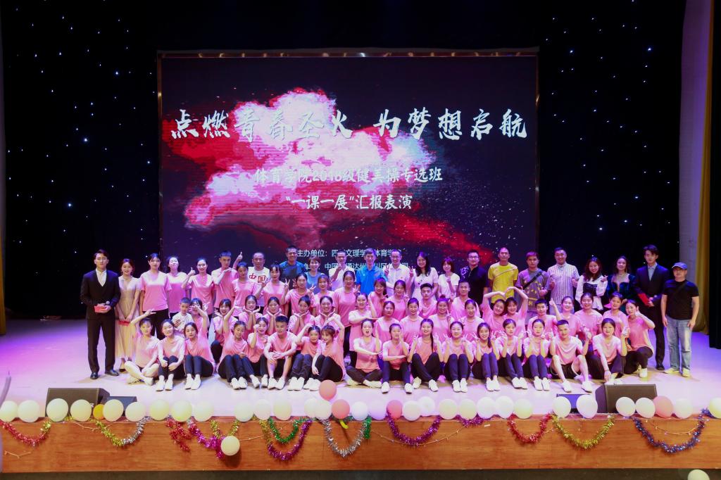 bevictor1946韦德官网党总支书记王兆忠为汇报演出致辞,他对2018级健美操专选班老师的悉心指导和同学们的刻苦训练致以了崇高的敬意,对同学们在过去两年时间里所取得的成绩表示了衷心的祝贺。他指出,bevictor1946韦德官网积极推进教学教研改革,各教研小组的活动开展有声有色,“一课一展”活动精彩不断,教风学风良好,教学质量稳步提升。他希望大家不断总结,积极探索,以演(赛)促学,以学促教,以教导学,不断提升公司的人才培养质量。