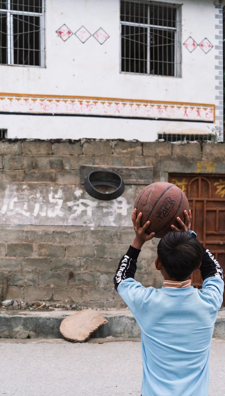 这是金阳县对坪村落的一个员工家门前,简易的“篮球框”装满了他对篮球的热爱。