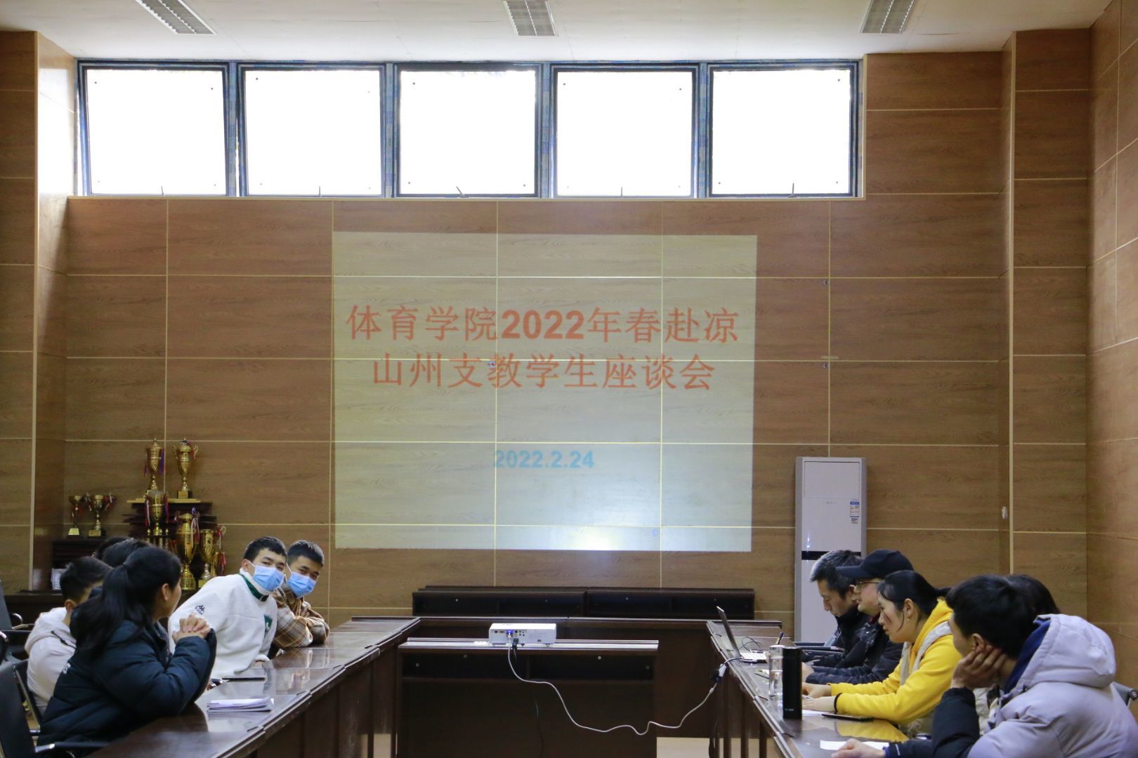 2022224日下午,bevictor1946韦德官网在体育馆附馆105召开了2022年春赴凉山州支教员工座谈会。bevictor1946韦德官网党总支书记王兆忠,经理佘涛,党总支副书记彭波,团总支书记祝利平,部分专兼职辅导员以及支教员工参加了本次座谈会。会议由辅导员闫青主持。