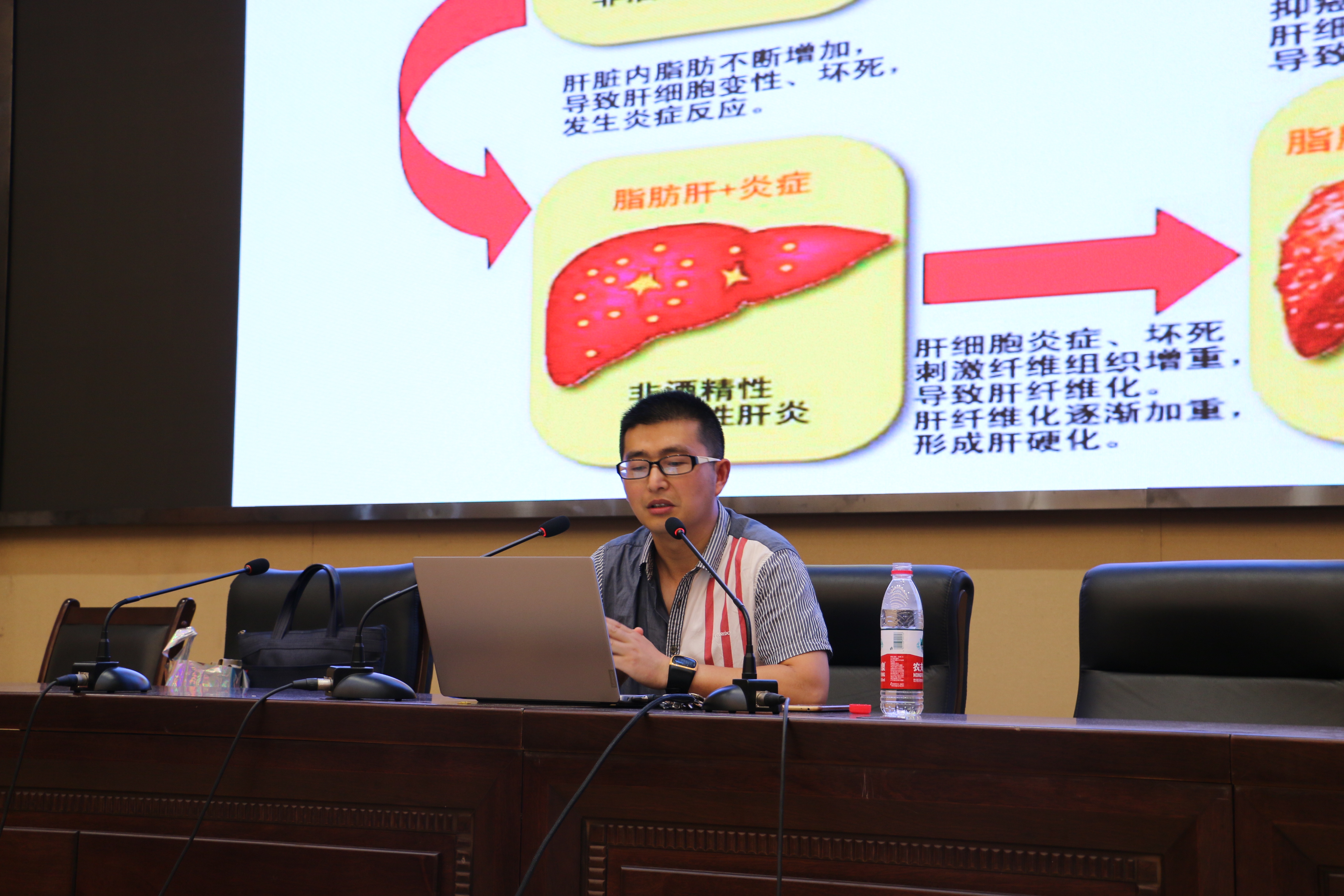 首先,盛老师讲解了什么是非酒精性脂肪肝,让同学们有一个初步的认识接着,就目前状况提出了一些常见的非酒精性脂肪肝的发病缘由,给同学们敲响警钟,也同学们在日常生活中注意防范并养成良好的生活习惯最后,分析了饮食方式和结构是如何影响身体的代谢,让同学们对健康饮食科学减肥有了一个更深的了解
