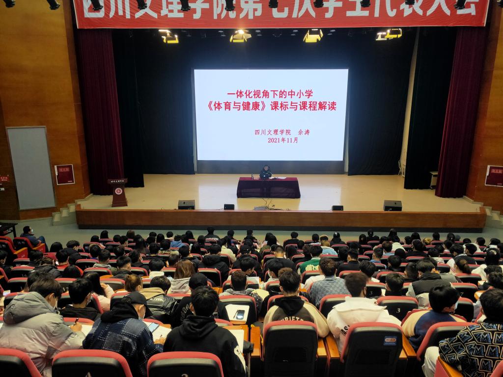1128日下午,bevictor1946韦德官网教授佘涛在莲湖校区多功能厅为本院员工作题为“一体化视角下的中小学《体育与健康》课标与课程解读”的学术讲座。讲座由副经理孙亮亮主持,大一、大二员工到场聆听。