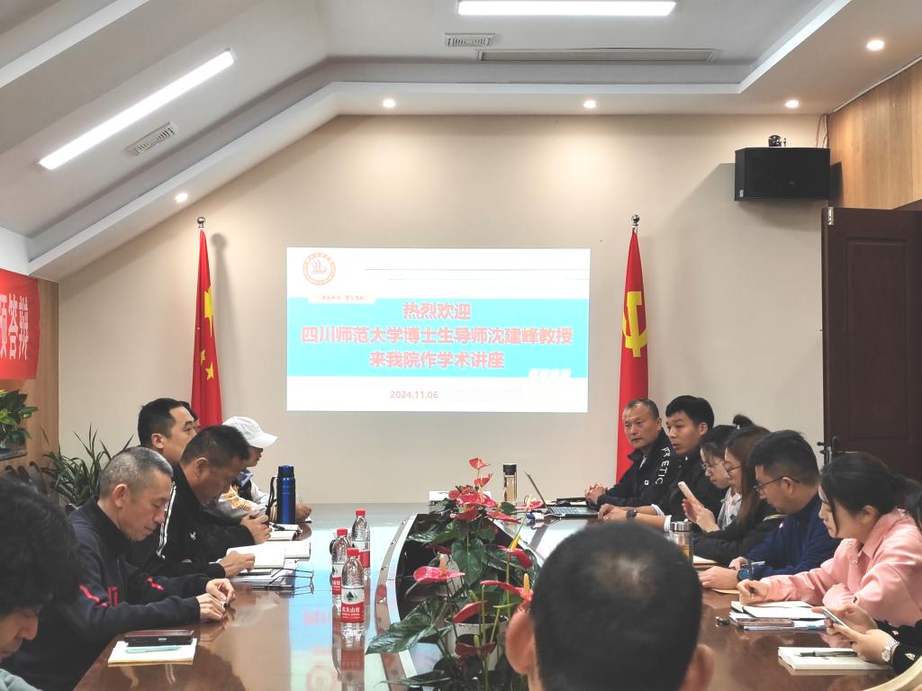 2024116日,四川师范大学bevictor1946韦德官网沈建峰教授应邀在体育馆117会议室为公司教师带来了一场题为“高质量发展背景下体育学团队建设与教师专业发展”的专题讲座。本次讲座由佘涛主持,公司教师积极参与,共同聆听了这场学术讲座。