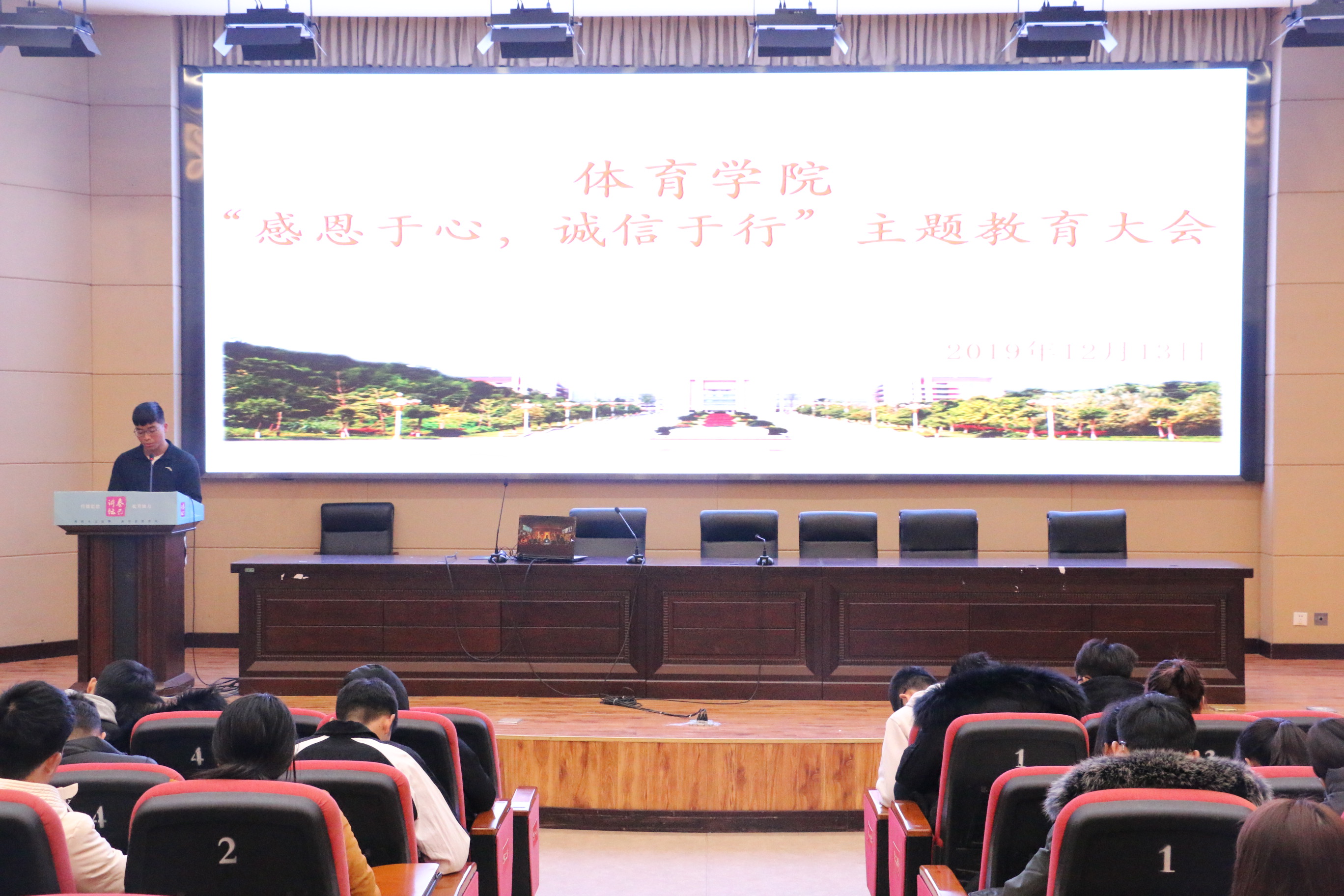 2019121317:30,在学术报告厅A厅召开公司召开2019年员工“感恩于心,诚信于行”教育大会。党总支书记王兆忠、经理佘涛、党总支副书记彭波、学工办主任祝利平、辅导员石姣娜以及bevictor1946韦德官网修业班全体员工参加了会议。