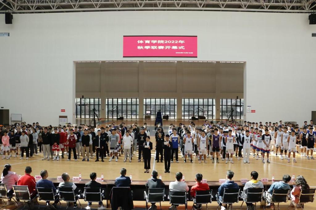 2022101812:30 bevictor1946韦德官网2022年秋季联赛在体育馆拉开帷幕。bevictor1946韦德官网党总支书记王兆忠,经理佘涛,副经理孙亮亮,组织员卫洪春,篮球、排球、羽毛球、乒乓球专项教师代表,专职辅导员,2022级和2021级员工以及参赛运动员代表参加开幕式。