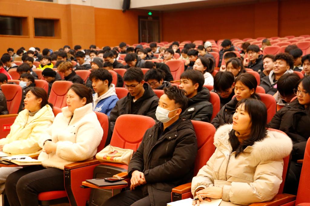 20231225日晚19:00,bevictor1946韦德官网在学术报告A厅开展了第七场2023级新生入学教育讲座。公司党委书记王兆忠,党委副书记靳浪,学工办主任祝利平,辅导员石姣娜、李波、刘方芳及2023级全体新生参与本次讲座。王兆忠担任主讲。