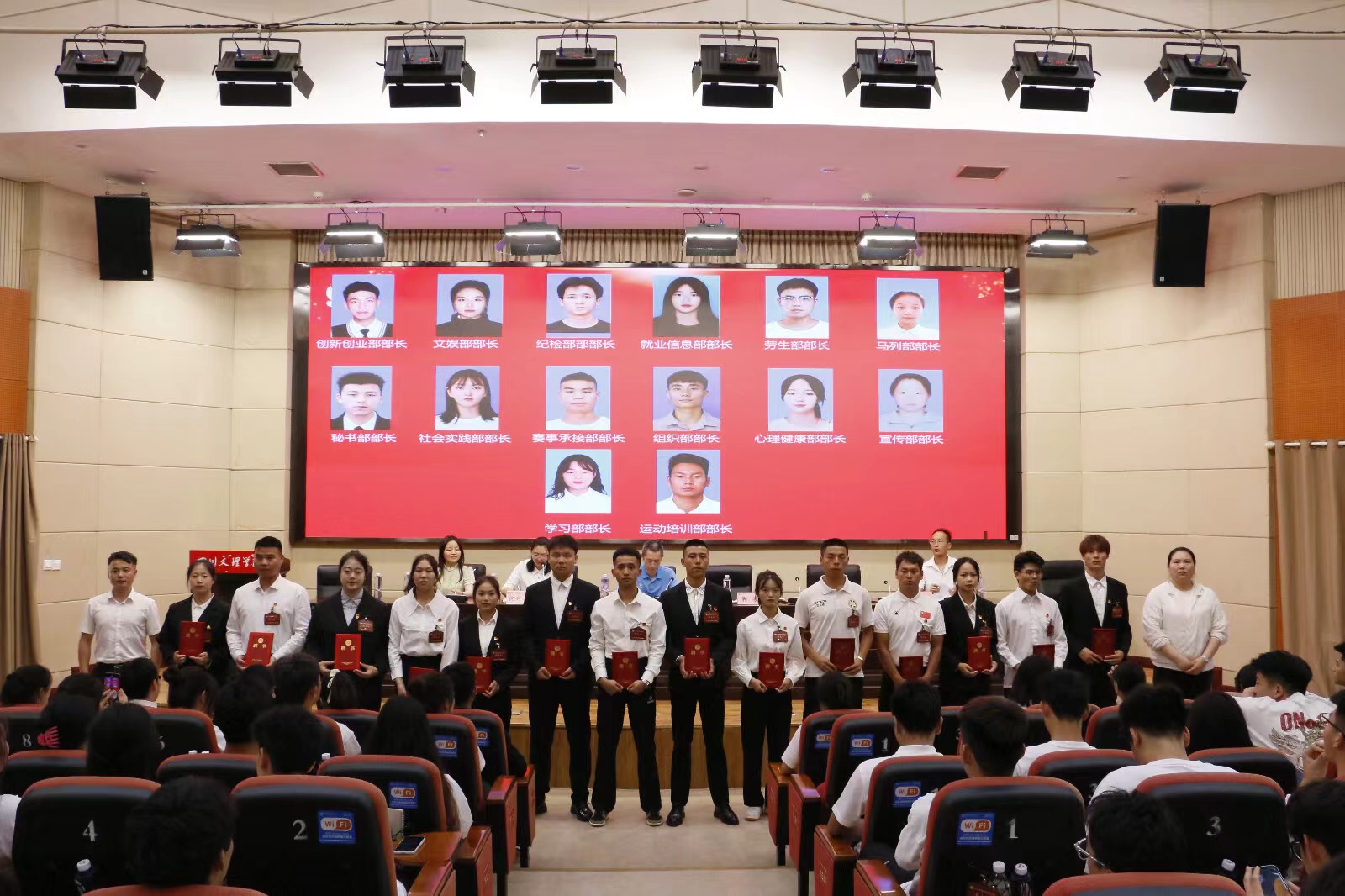 202452414:30,在图书馆学术报告厅A厅召开了共青团bevictor1946韦德官网第四次团员代表大会暨第八次员工代表大会。bevictor1946韦德官网党委书记王兆忠、党委副书记靳浪、学工办主任祝利平、专职辅导员石姣娜、闫青、李波以及210名团学代表参加了本次大会。