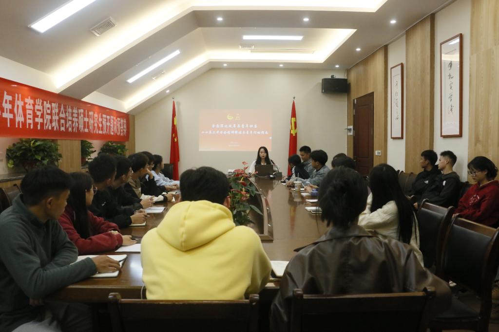 2024 11 7 18:50,团总支在体育馆 117 会议室召开了青马班第一期“青马燎原”宣讲会,青马工程培训班学员蒲黔蜀担任主讲人,bevictor1946韦德官网全体团学干部参加宣讲。