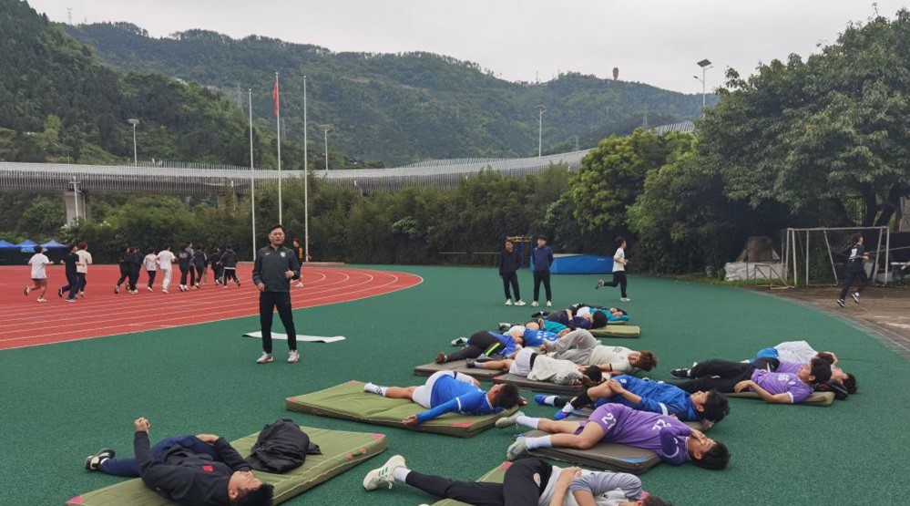首先,主教练杨阳就赛前训练安排进行了详细部署。他从体能储备、战术磨合、分组对抗到赛前恢复等环节逐一明确,并重点强调了训练纪律、出勤要求及伤病预防等事项。杨教练指出,“贡嘎杯”是省内高校高水平足球赛事,每一分钟训练都关乎赛场表现,全体队员必须端正态度、令行禁止,以最严谨的作风投入每一次合练。