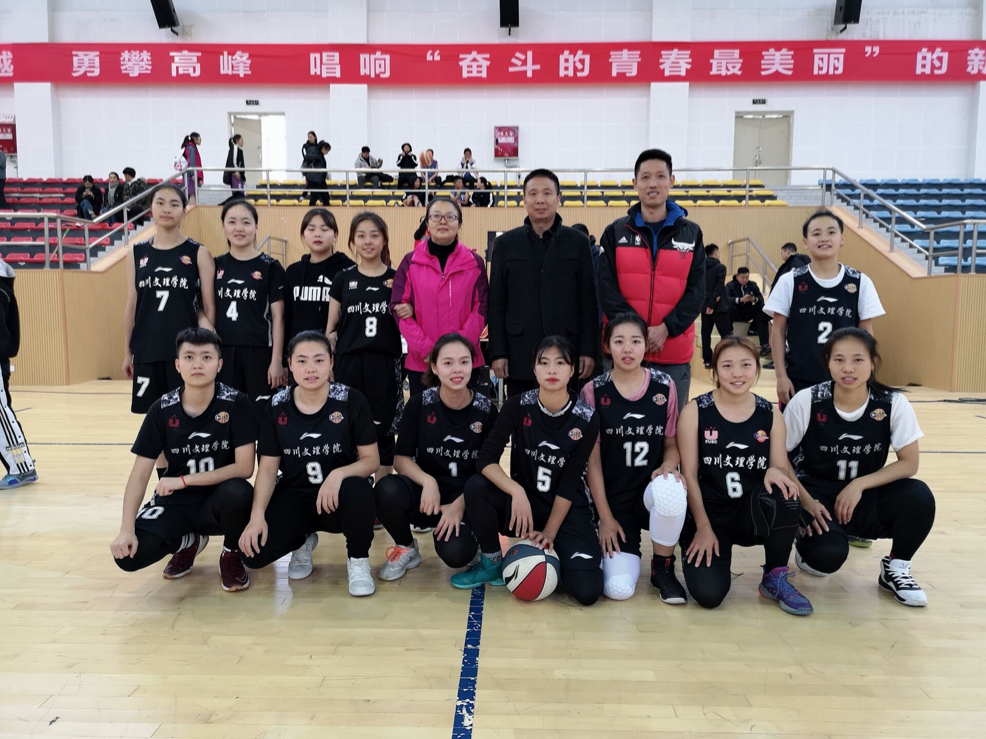 21届CUBA中国老员工篮球一级联赛(四川赛区)于20181114日至1118日在成都文理公司(金堂校区)举行。本次比赛由中国老员工体育协会和四川省教育厅主办。公司陈雨衡、何美琼、李纪霜、徐雪、邓小芳、丁李捷、李晓玲、周悦、李艳丽、王梦霞 、王婕妤、邓梦瑶十二名队员在领队覃雪芹老师及主教练邓伟老师的带领下参加了比赛。